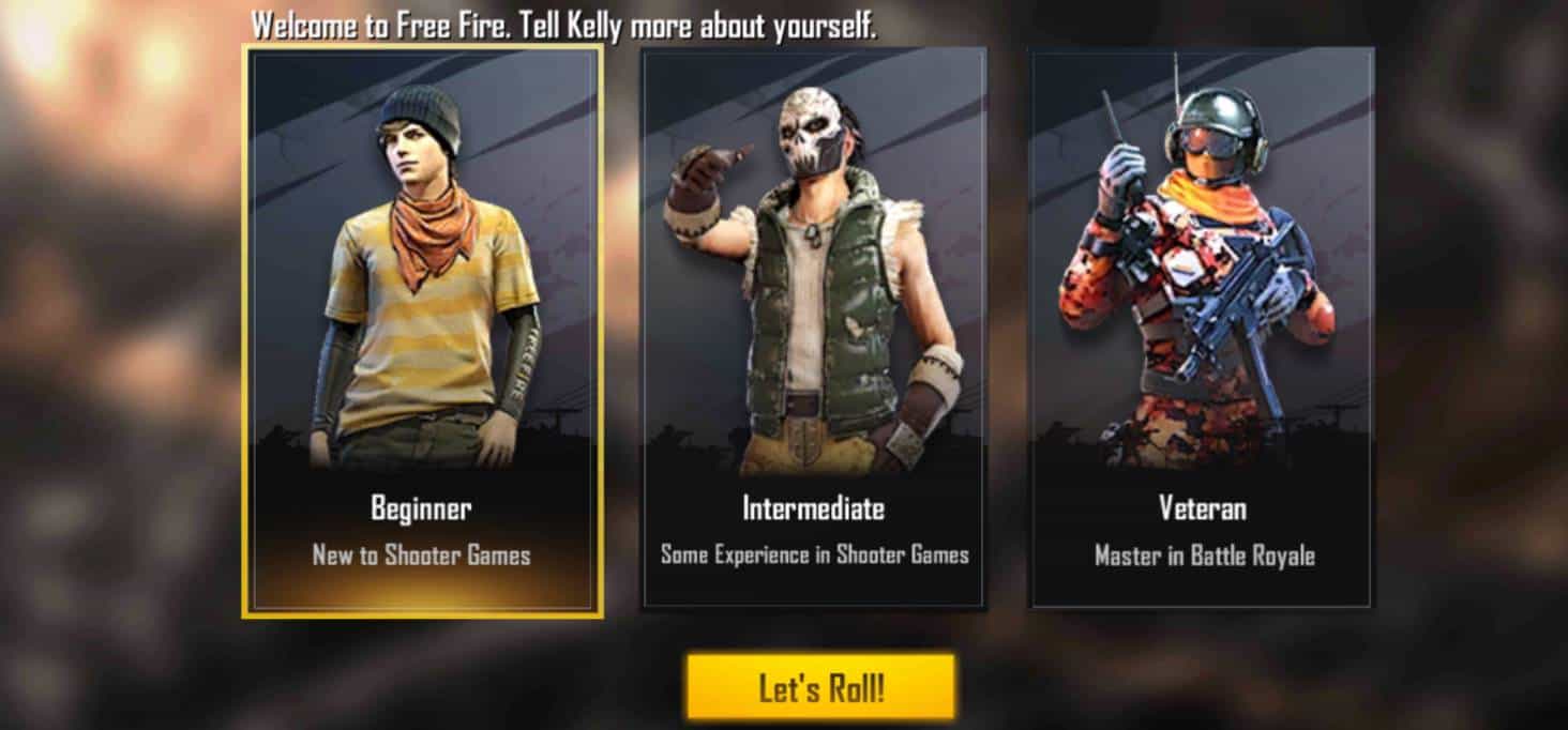 بعد ذلك سيتم سؤالك على ما هو مستواك في ألعاب الباتل رويال بشكل عام وستقوم بتحديد المستوى من أجل البدء في عملية الدخول إلي واجهة اللعبة الرئيسية .