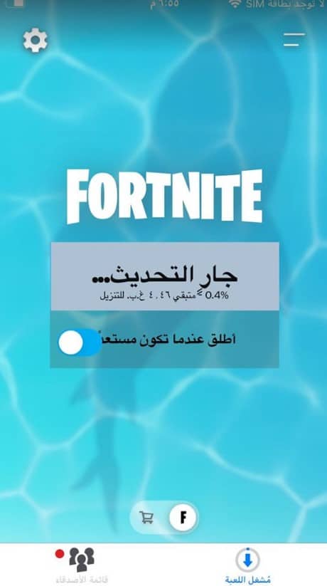 وأخيراً عزيزي القارئ سيتم البدء في البحث عن التحديثات الخاصة بتلك اللعبة وتحميلها على هاتفك حتى تتمكن من البدء في عملية اللعب وكما هو واضح في تلك الصورة هناك تحديث مساحته 4 جيجابايت وبمجرد الانتهاء من تحميله ستتمكن عزيزي القارئ من تشغيل لعبة فورت نايت على جوالك بكل سهولة .