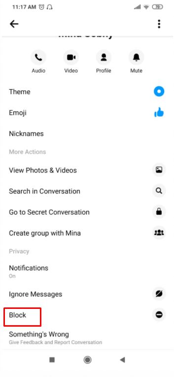 في البداية ولحظ مستخدم على الماسنجر قم بفتح التطبيق ثم قم بالدخول على المحادثة، بعد ذلك قم بالضغط على علامة الدائرة بالأعلى ثم قم بالضغط على خيار Block أو حظر .