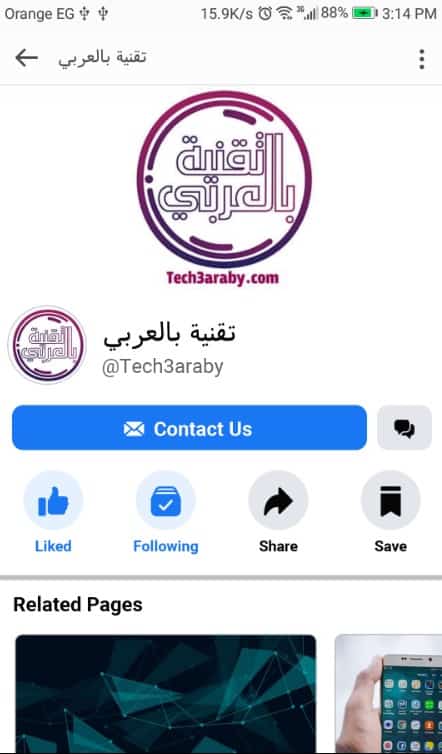 وستظهر لك أيضاً الصفحات الموجودة على التطبيق كما هو بتلك الصورة ويمكنك تصفحها بشكل طبيعي فهو يشبه فيس بوك الأساسي بشكل كبير جداً .
