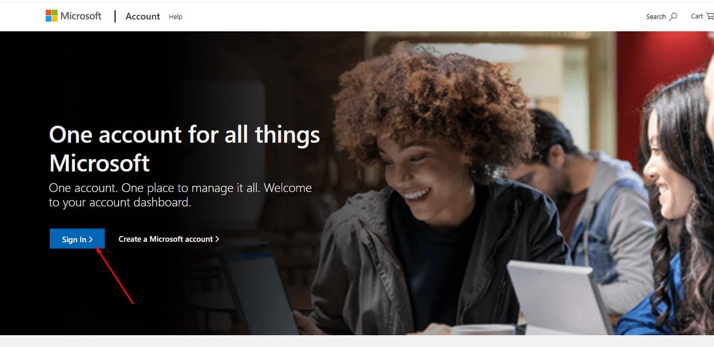 - ستقوم بالضغط هنا لتستطيع الدخول إلى موقع مايكروسوفت، وستظهر لك واجهة الموقع كما بالصورة التالية.