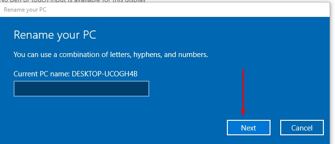 - ثم قم بكتابة الاسم الجديد وإضغط على next كما موضح بالصورة التالية.