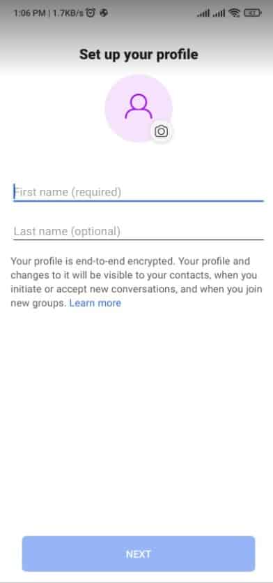 - أما الخطوة التالية متعلقة بإضافة صورتك واسمك على التطبيق من اجل إتمام عملية إنشاء الحساب ومن الجدير بالذكر أن كل تلك الخطوات لن تستغرق أي وقت على الإطلاق .