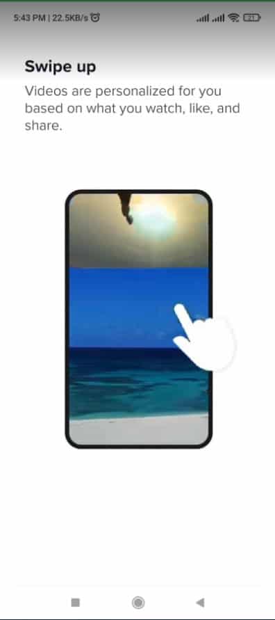 • بعد ذلك قم بسحب الشاشة لأعلى كما هو بتلك الصورة بالضبط وسريعاً ما ستتمكن من البدء في عملية مشاهدة الفيديوهات من على تطبيق تيك توك سواء من على هاتفك الاندرويد أو حتى هاتفك الايفون دون أي مشاكل على الإطلاق .