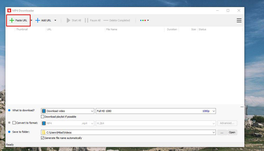 - لتحميل أي فيديو من الفيس بوك قم بنسخ الرابط ثم قم بالضغط على Paste URL لتبدأ عملية التحميل على الفور .
