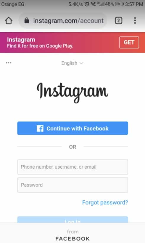 - في البداية ستقوم بالضغط هنا أيضاً وسيتم تحويلك إلي داخل صفحة تسجيل الدخول على هاتفك الايفون ولكن يفضل أن تقوم بمسح تطبيق الانستقرام من هاتفك قبل القيام بهذا الأمر لإنه في كثير من الأحيان يقوم هذا الرابط بتحويلك إلي داخل حسابك على الانستقرام من داخل التطبيق وبتلك الطريقة لن تتمكن من الوصول إلي صفحة الحذف .