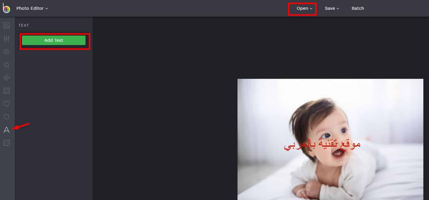 - بعد رفع الصورة على الموقع قم بالضغط على خيار Add Text .
