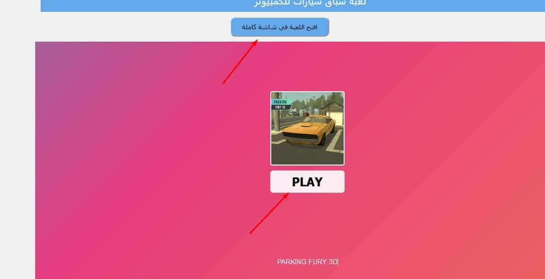 - سأقوم باختيار لعبة سباق السيارات، وسيظهر بعد ذلك لك هذه الواجهة وهي أن تقوم باختيار اللعب بملئ شاشة الكمبيوتر، وحتى تستطيع البدء في اللعب ستقوم بالضغط على play كما بالصورة التالية.