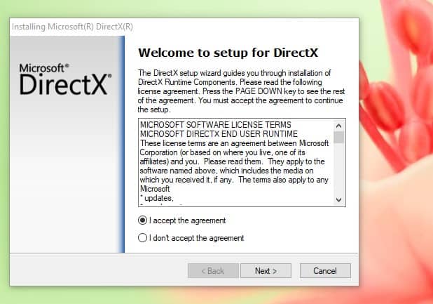 في حالة استمرار المشكلة بعد تنفيذ الخطوات الموجودة بالفقرة السابقة هذا يعني أن المشكلة معقدة بعض الشيء وستحتاج منك إلي مجهود مضاعف وسنحتاج أصدقائي إلي تحميل أحد البرامج الإضافية والتي ستساعدك في القضاء على تلك المشكلة نهائياً وهذا من خلال تحميل برنامج DirectX والذي يعد من أقوى وأفضل البرامج التي يمكنك استخدامها أو بمعنى أدق اللجوء إليها من أجل القيام بأي شيء يتعلق بتشغيل الألعاب أو البرامج التي تعاني من نقص الملفات أو مشاكل عند التشغيل هذا بالإضافة إلي أن عملية تنزيل هذا البرنامج على جهاز الكمبيوتر الخاص بك في غاية السهولة ولن تستغرق أي وقت على الإطلاق .