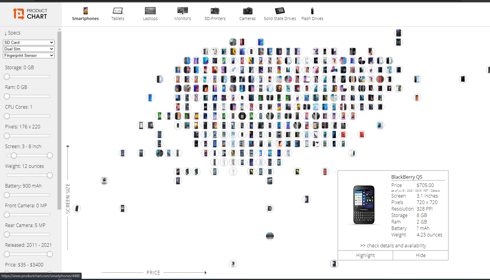 يعتبر موقع Product Chart من أسرع المواقع وأكثر المواقع التي تحتوي على قاعدة كبيرة من البيانات المختلفة عن الهواتف الجوالة، في الحقيقة هذا الموقع به العديد من الخدمات ليس فقط مقارنة بين الحواسيب المختلفة، وإنما تستطيع أن تستخدمه في المقارنة بين الهواتف المختلفة وبين التابلت والشاشات والكاميرات المختلفة وغيرهم كثيرًا، وسنتعرف في هذه الفقرة على كيفية الدخول إلى الموقع وكذلك الاستخدام في المقارنة بين الهواتف.