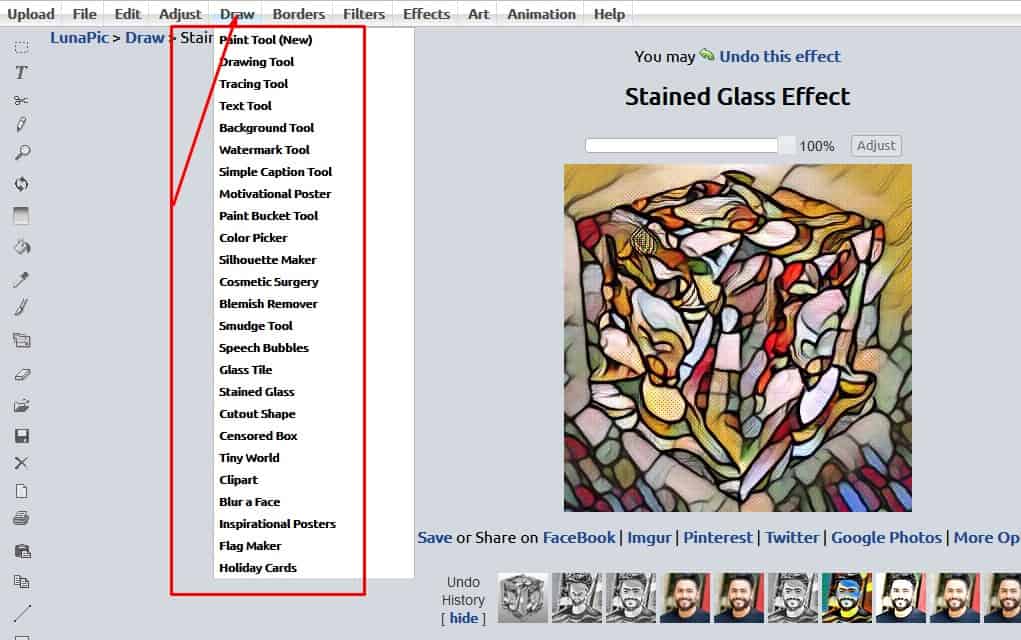 - موقع LunaPic يوفر لك ميزة تحويل الصورة إلي رسمه بشكل احترافي .
